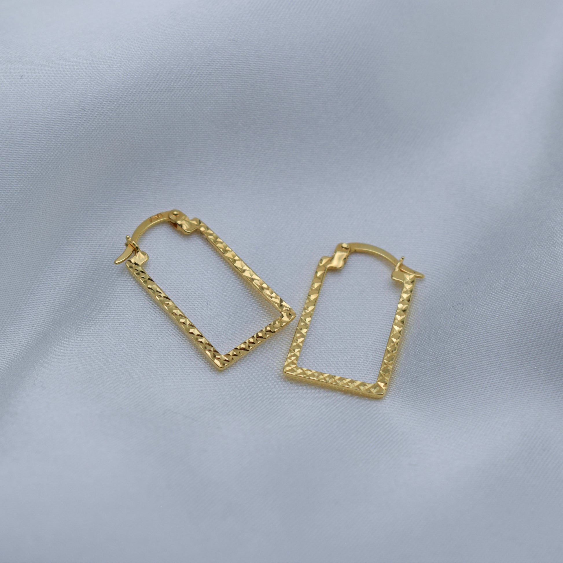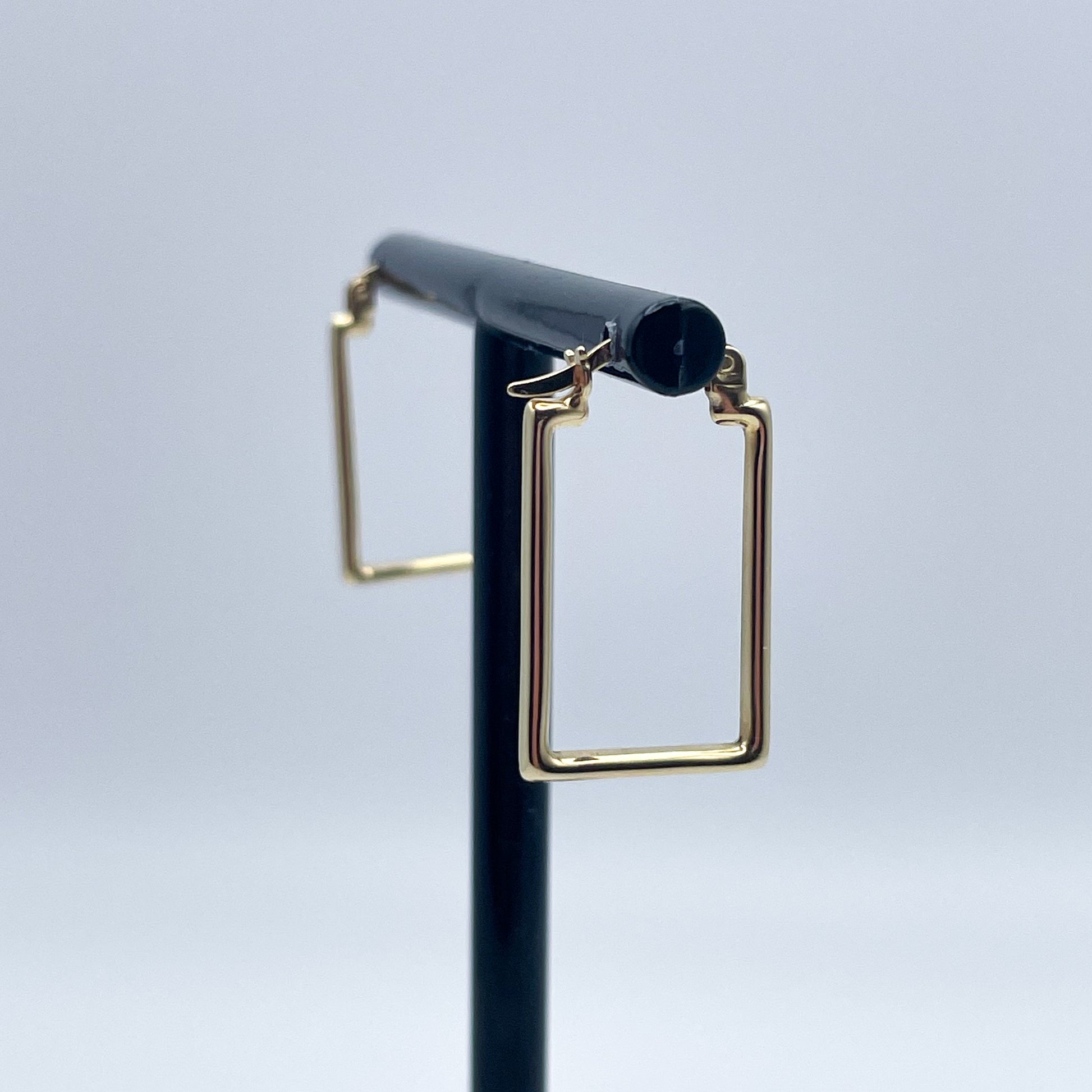These 18K Confidence Rectangular Earrings are the perfect addition to any ensemble. Crafted from 18 karat solid gold, these glamorous gold earrings sparkle and glisten, catching the eye of all who gaze upon them and elevating any look. Stand out and make a statement with these luxurious earrings.