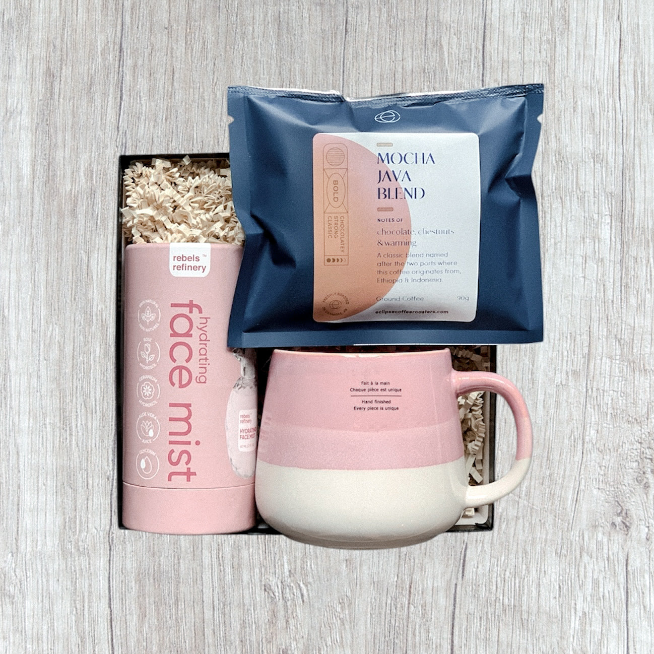 We believe that the best gifts come from the heart. And when it comes to giving the perfect gift, there's no better way to show that you care than by giving a gift that is made with local Canadian love. And for every purchase of our curated gift boxes Canada, you are supporting Canadian small businesses, planting a tree and donating to charity. Your act of giving help support local businesses and communities to thrive so they can continue providing meaningful work—and products—to everyone around them. Whether you're looking for a curated gift box Canada or want to build your own gift box, we got you.